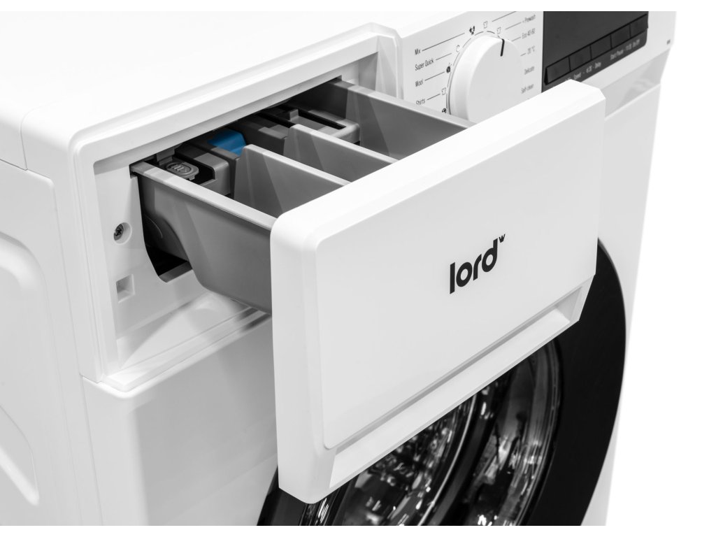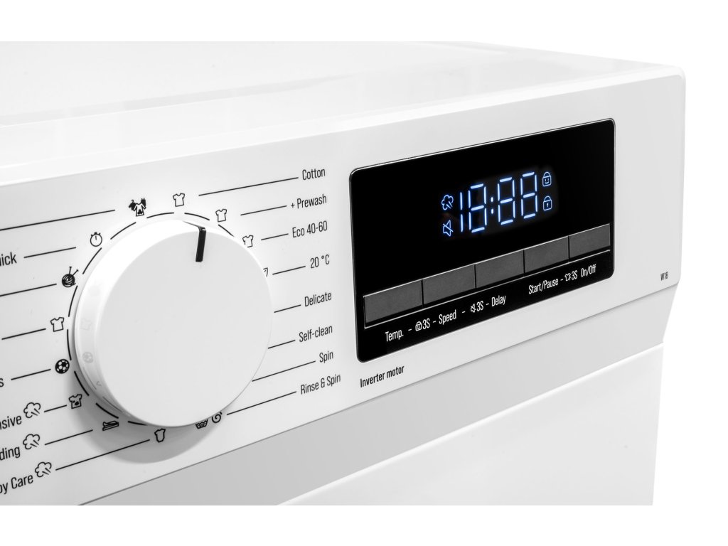 Předem plněná pračka, Maximální náplň: 8 kg, Spotřeba vody: 48 l/cyklus, Spotřeba el. energie: 38 kWh/100 cyklů.Maximální otáčky při odstředění: 1400/min, BLDC invertor motor, 16 pracích programů.