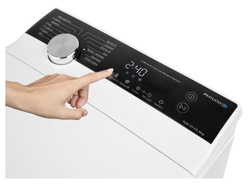 Vrchem plněná parní pračka Philco PLDI 127 ATL King v energetické třídě A. Můj program, usnadňuje obsluhu Vámi vybraného nejpoužívanějšího programu.